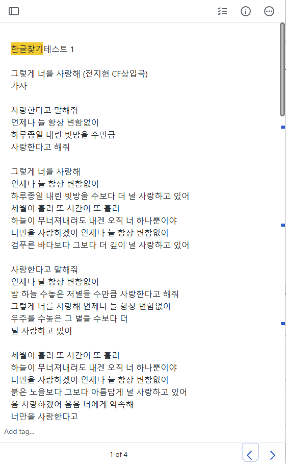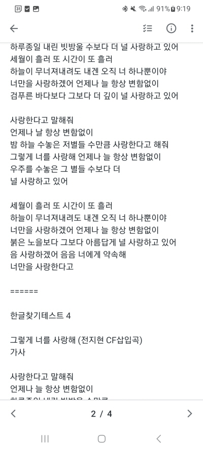 한글찾기테스트 4그렇게 너를 사랑해 (전지현 CF삽입곡)