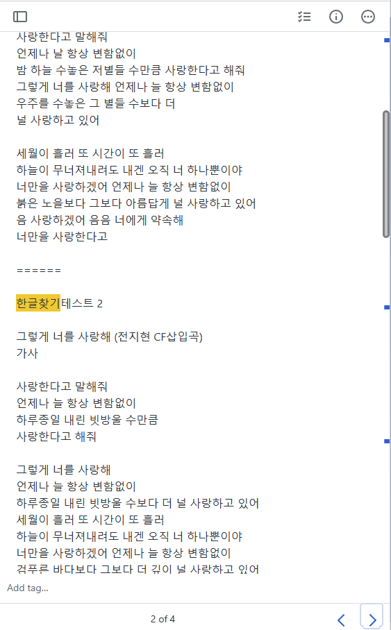 When searching for a specific word in a note written in Korean in the SimpleNote Android app and entering the note, the location is incorrect even if you press “< >”. The location is correct for notes written in English. Also, the location of Korean notes is correct in the SimpleNote web. Please make sure that the location of the search word for Korean notes is correct in the app as well.